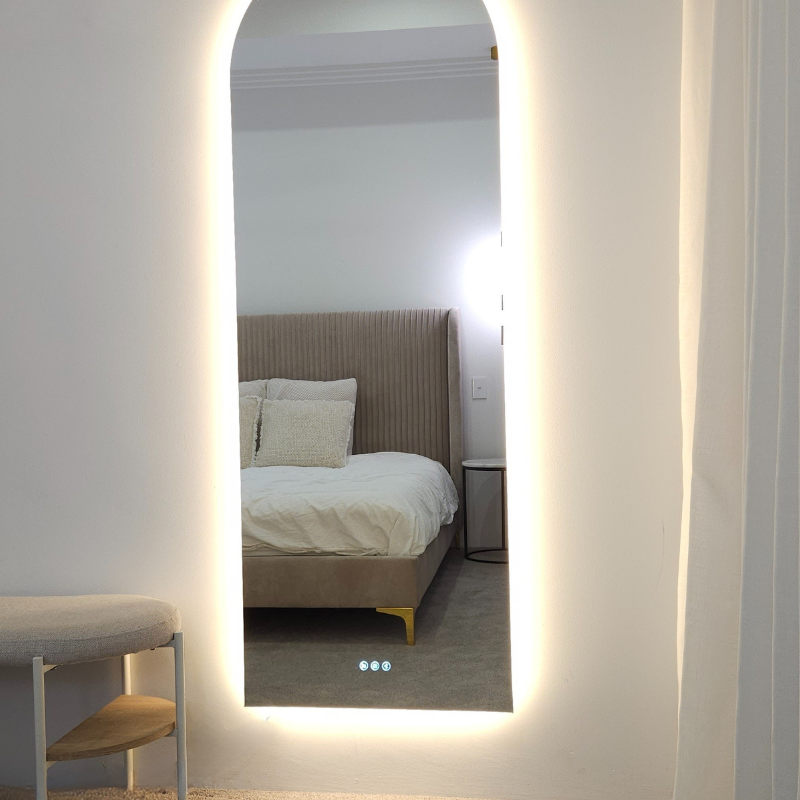 - Adjustable Brightness: Dim or brighten the LED display of your arch backlit mirror to create the perfect ambiance, giving you full control over your environment.