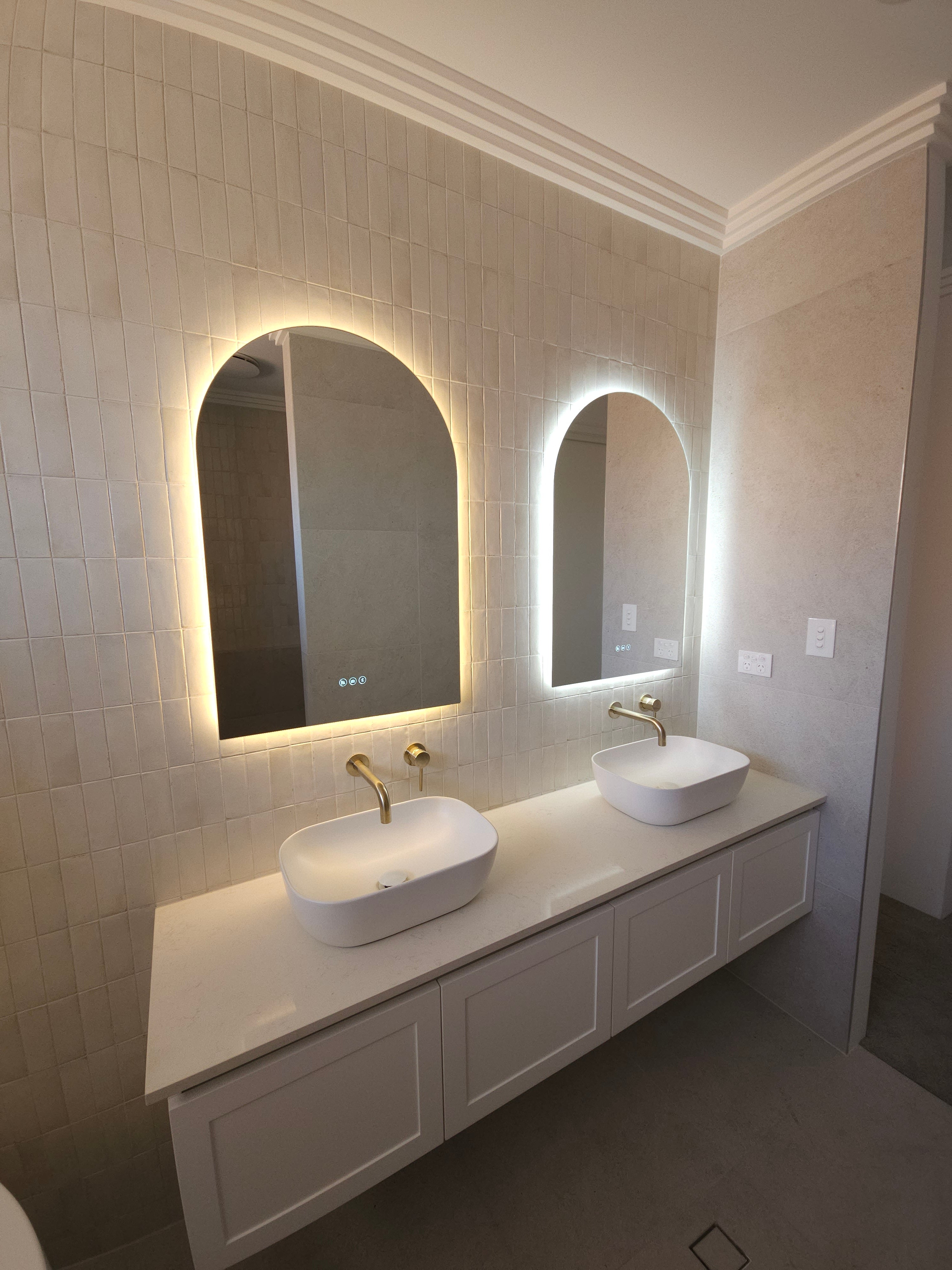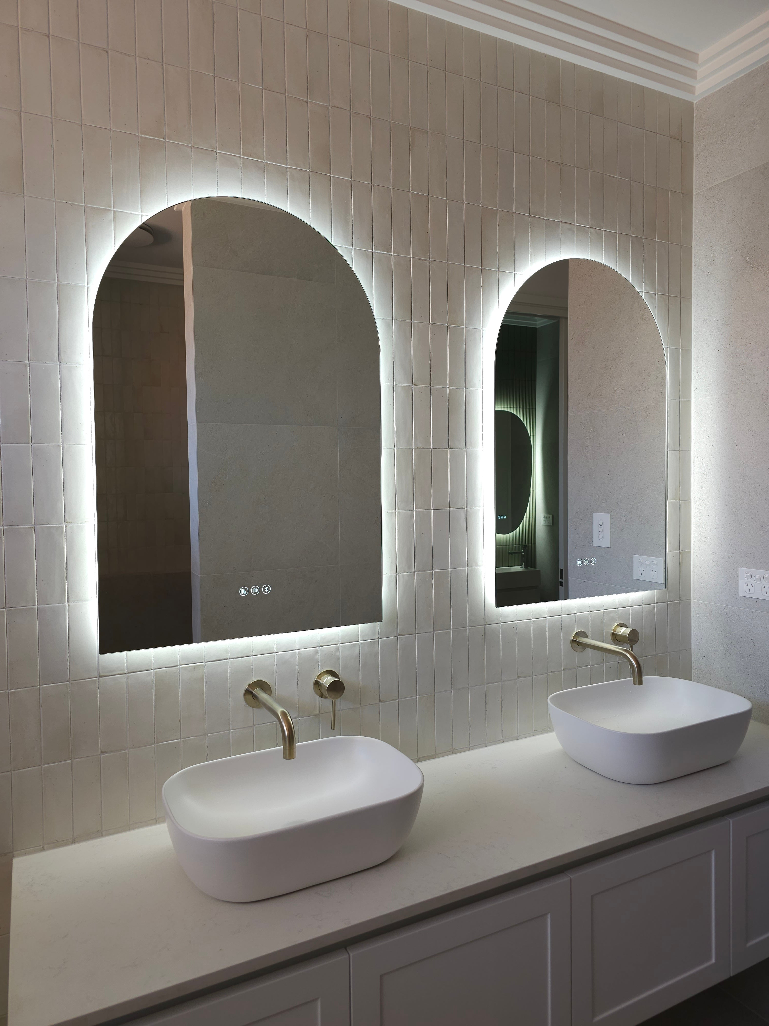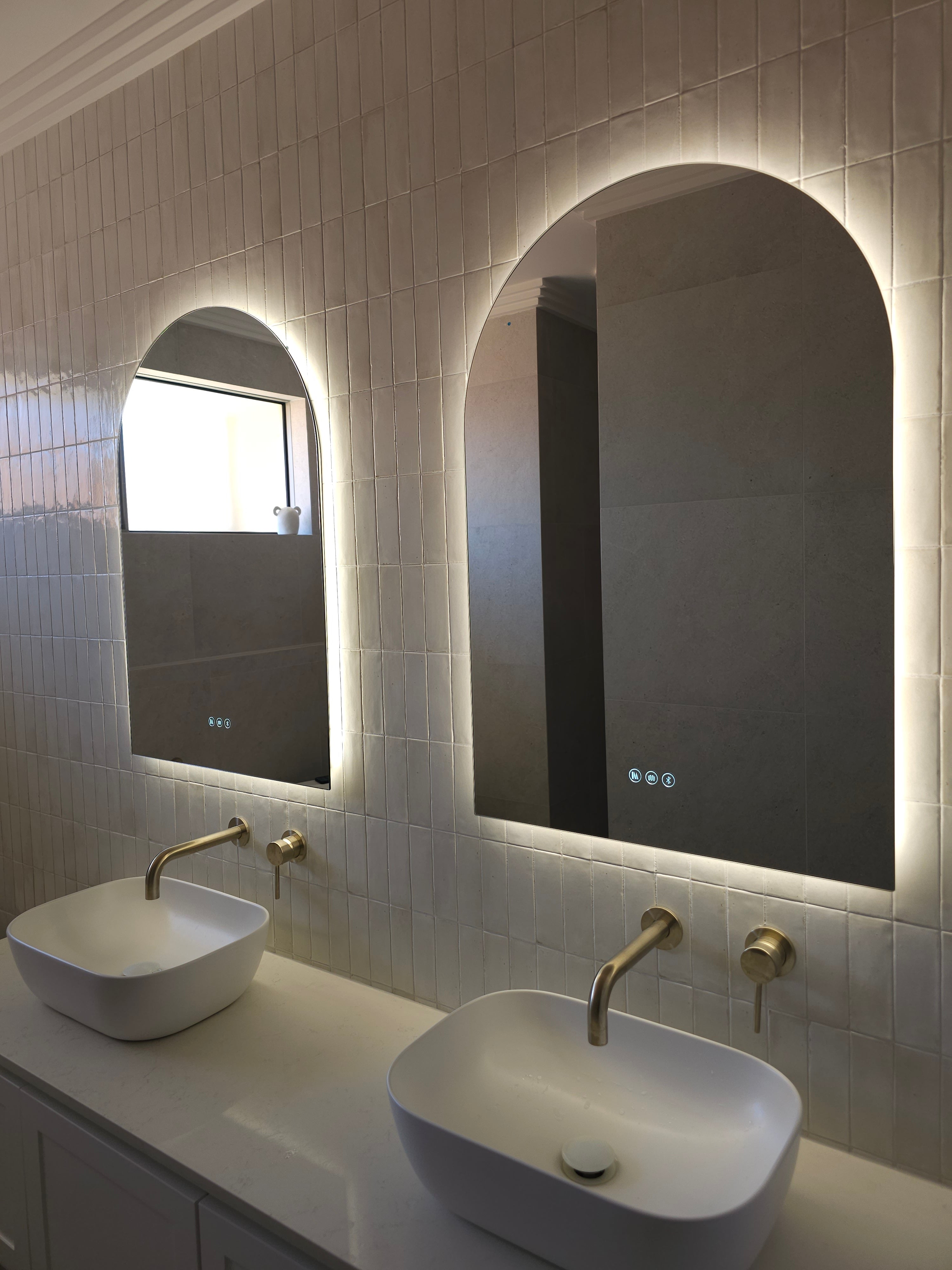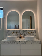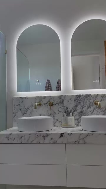Make a powerful style statement with the Positano Lux Smart Mirror – where striking design meets advanced functionality. With its graceful arched silhouette, integrated Bluetooth audio, and colour-customisable lighting, this mirror transforms any room into a refined sanctuary of sound, light, and style.