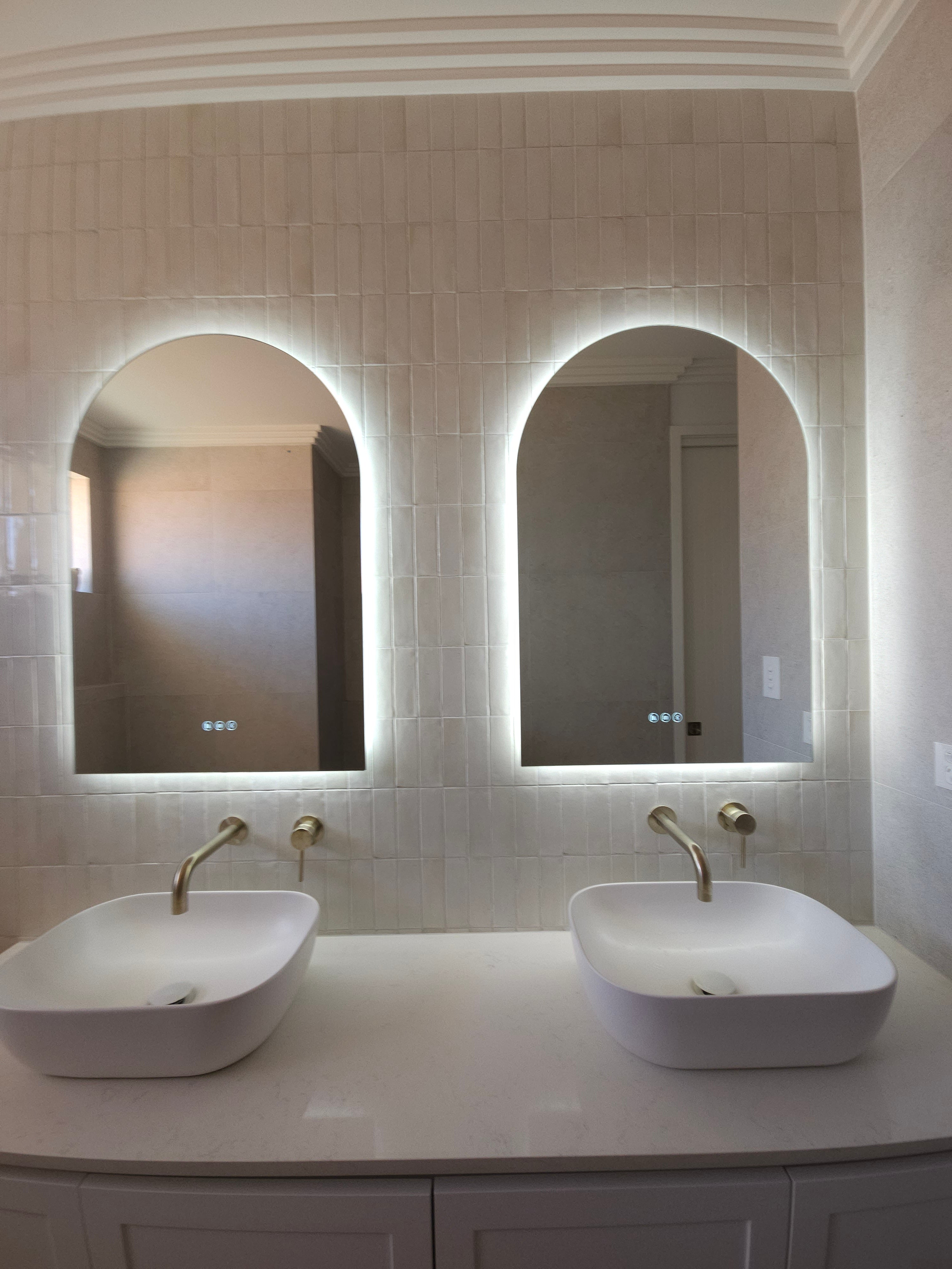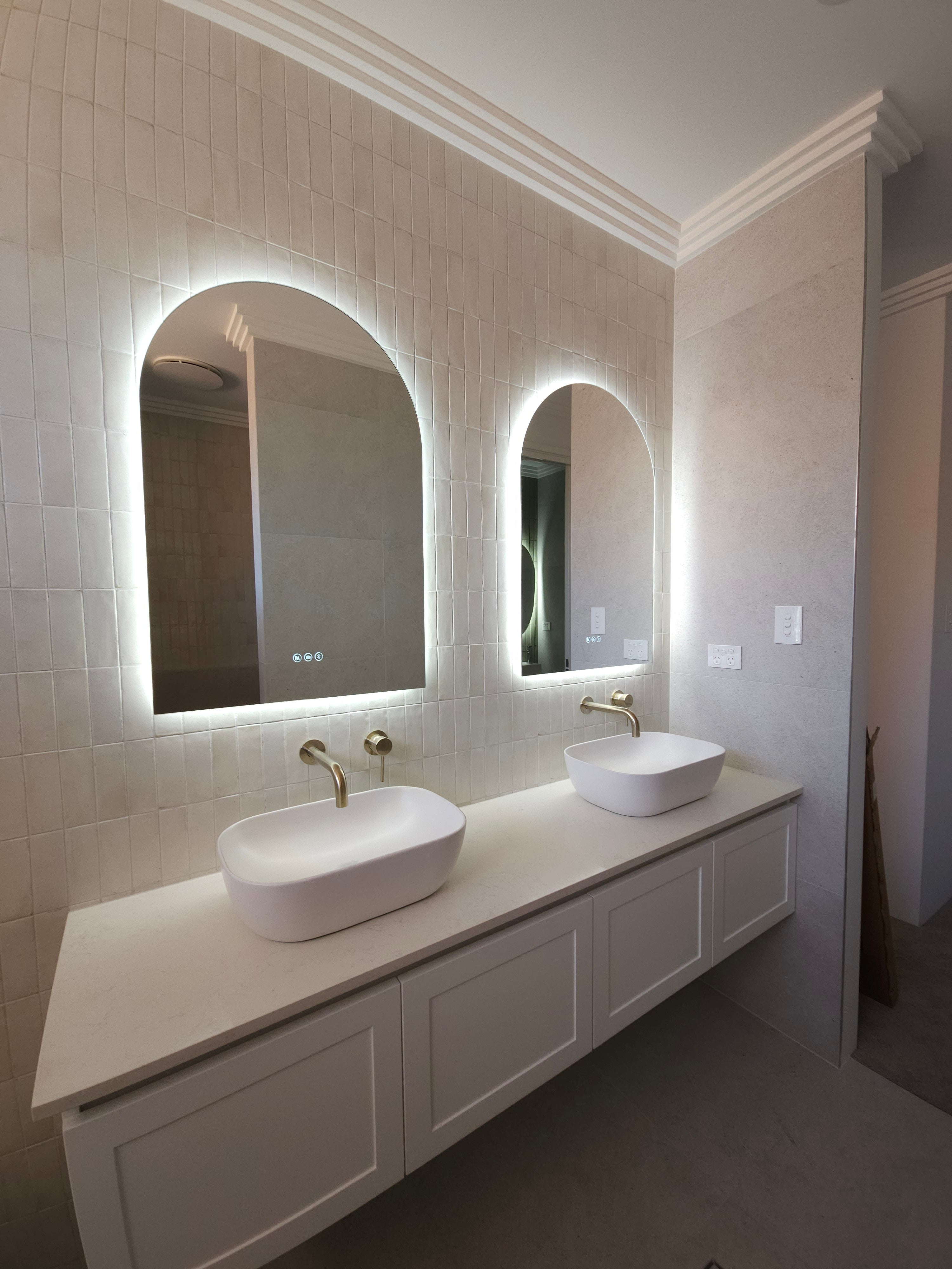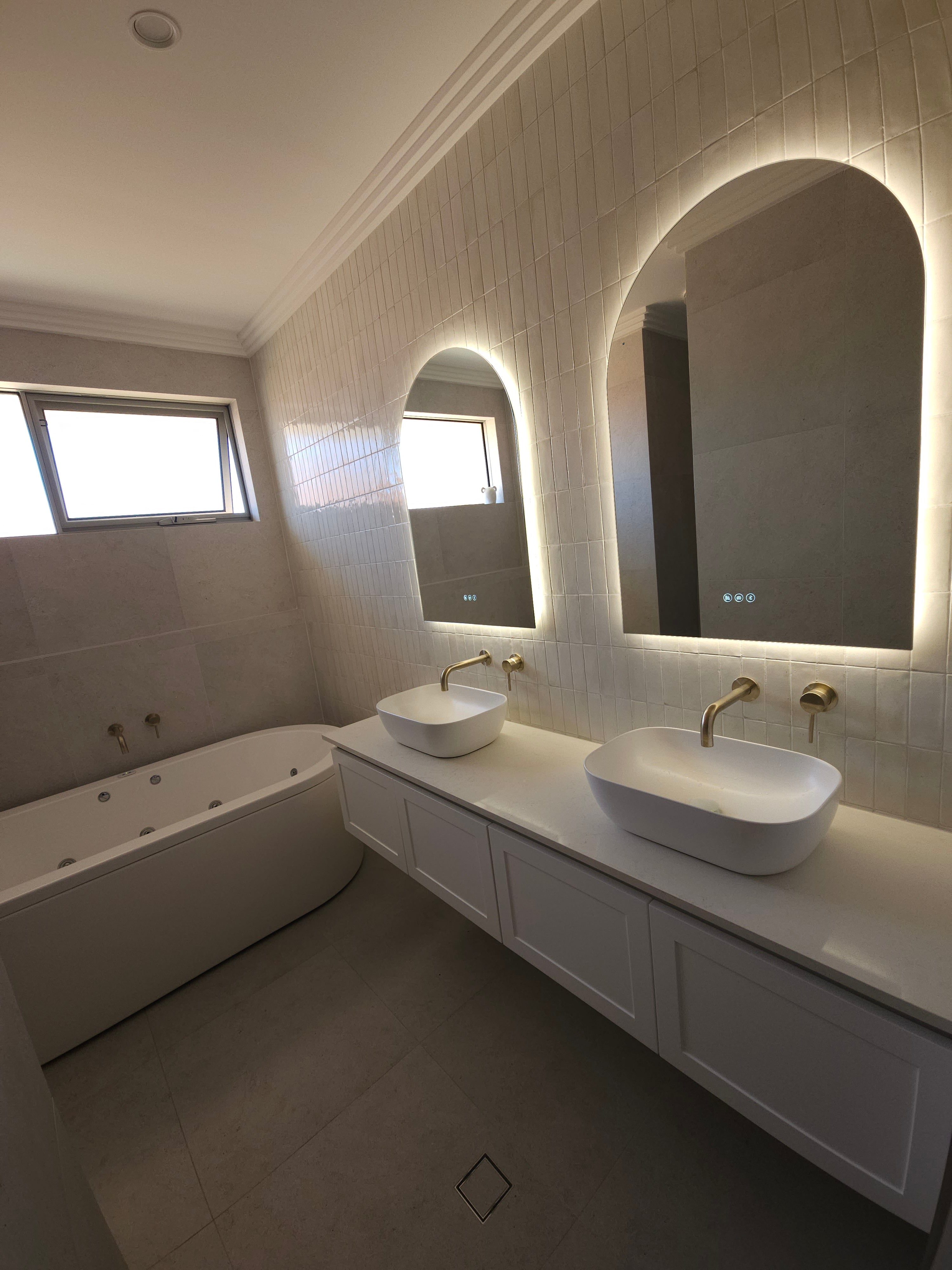 Make a powerful style statement with the Positano Lux Smart Mirror – where striking design meets advanced functionality. With its graceful arched silhouette, integrated Bluetooth audio, and colour-customisable lighting, this mirror transforms any room into a refined sanctuary of sound, light, and style.