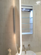 The Riviera LED Mirror Cabinet brings together modern tech and refined form with a distinctive oval, pill-shaped silhouette. Featuring touch-controlled ambient lighting, built-in Bluetooth audio, and hidden internal storage, it transforms your bathroom into a luxurious, clutter-free sanctuary.