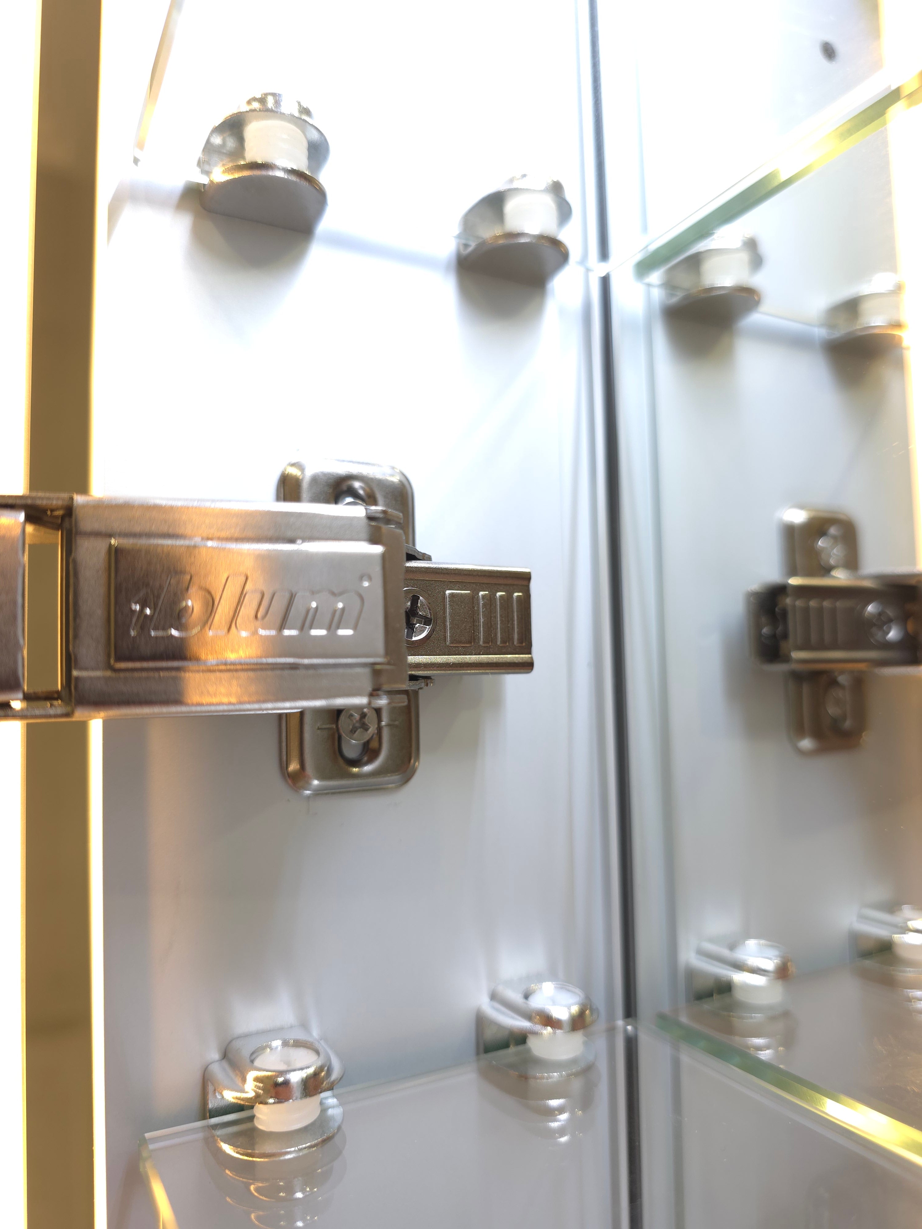 Two internal tempered glass shelves with adjustable rail system