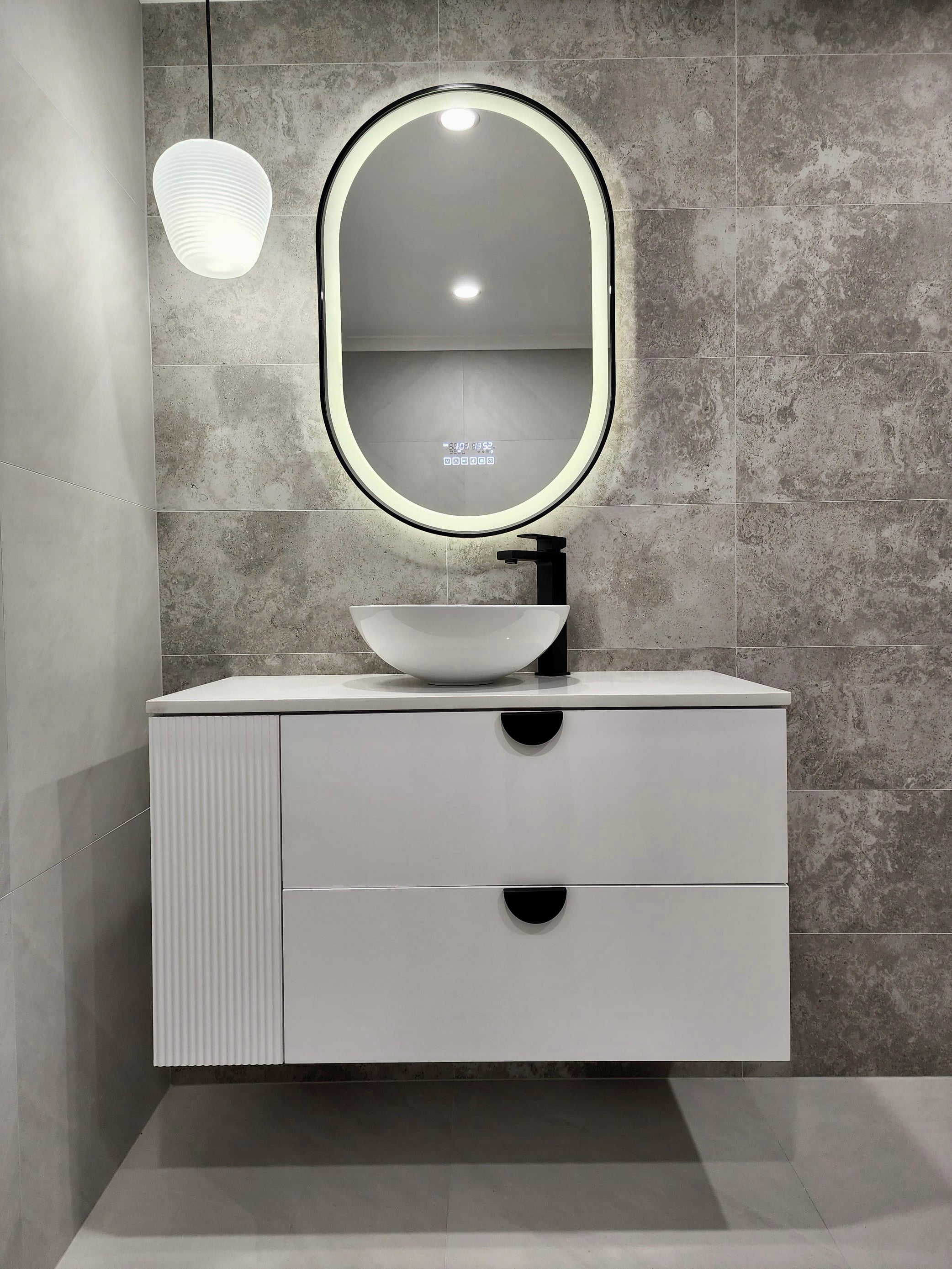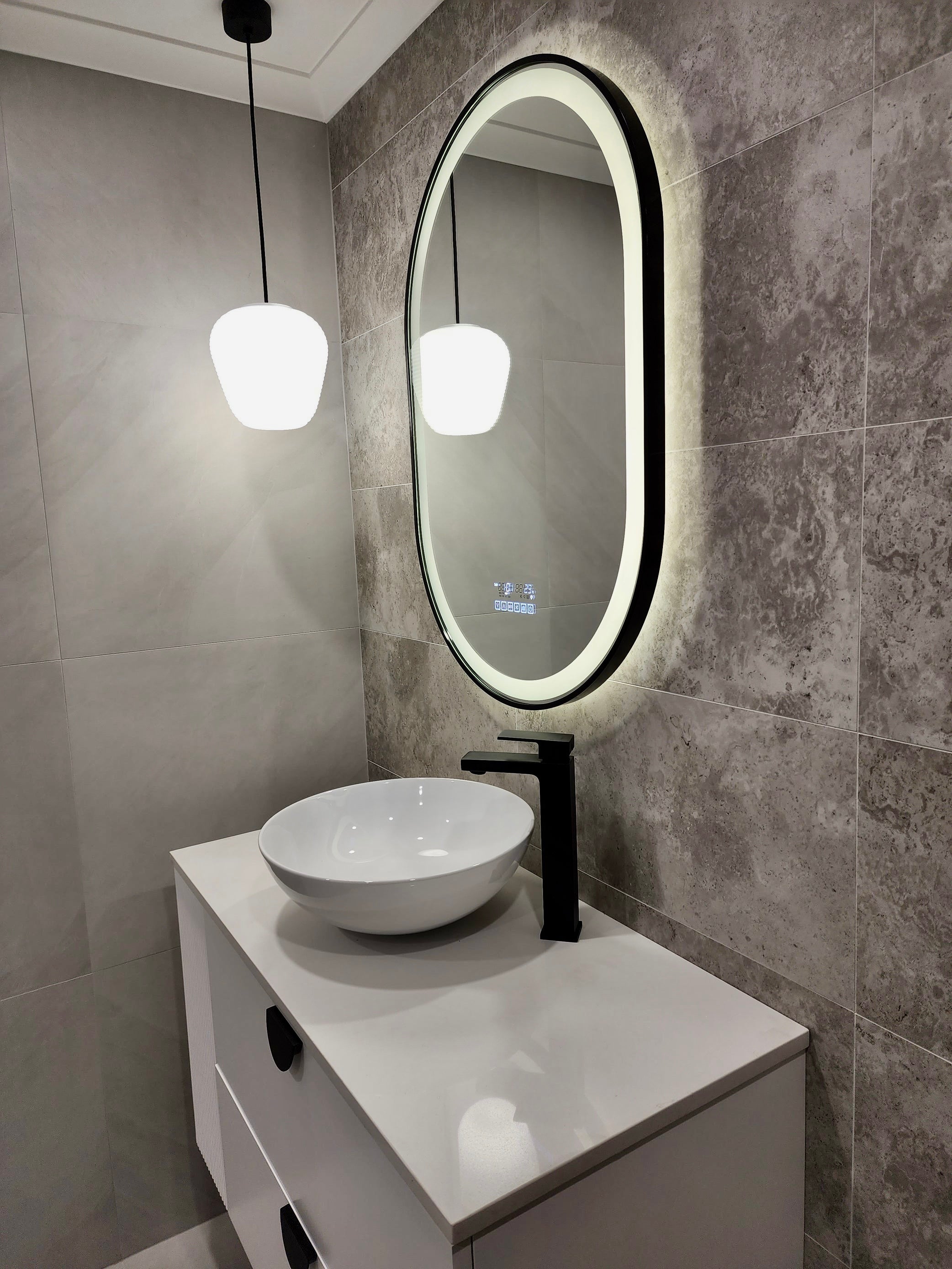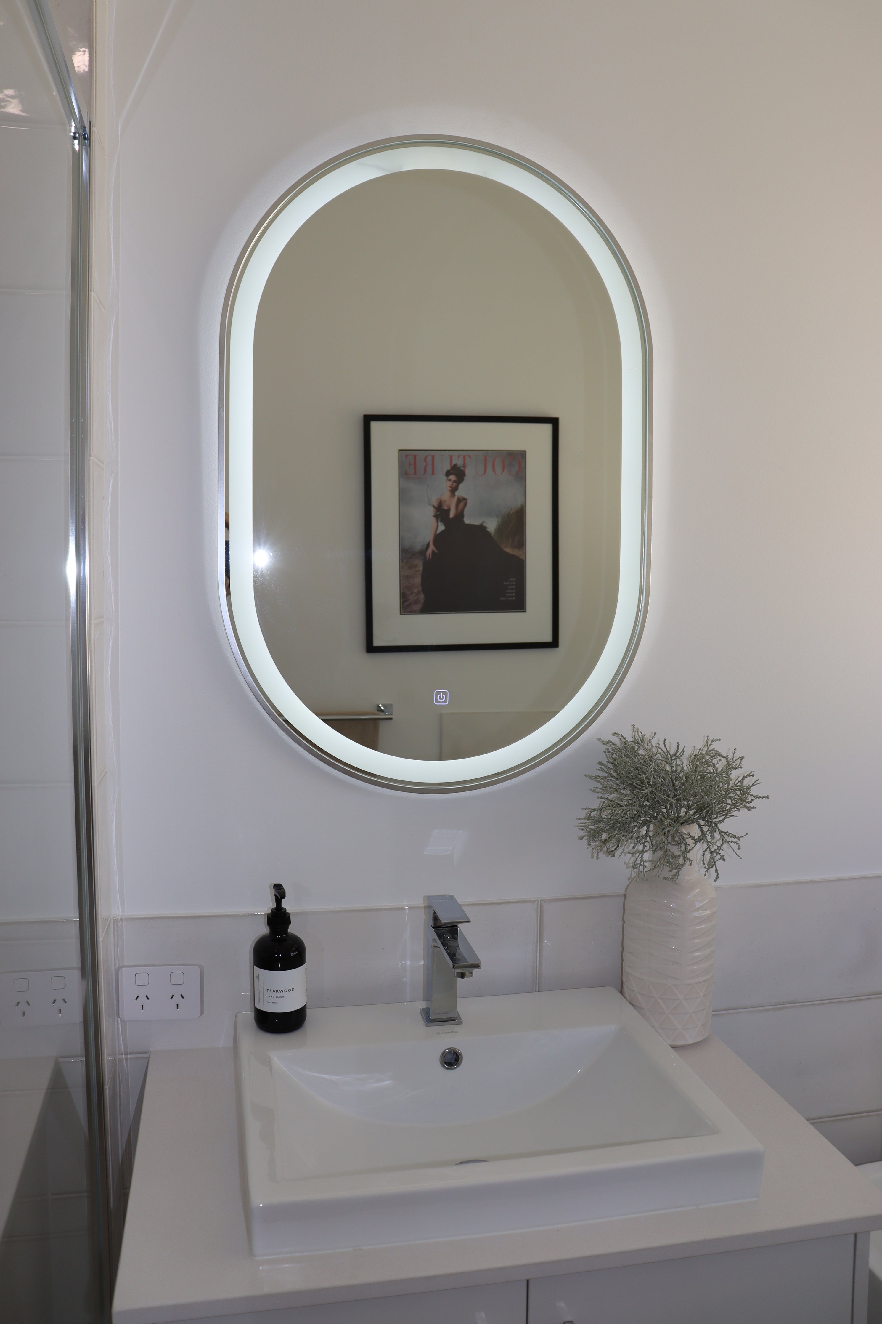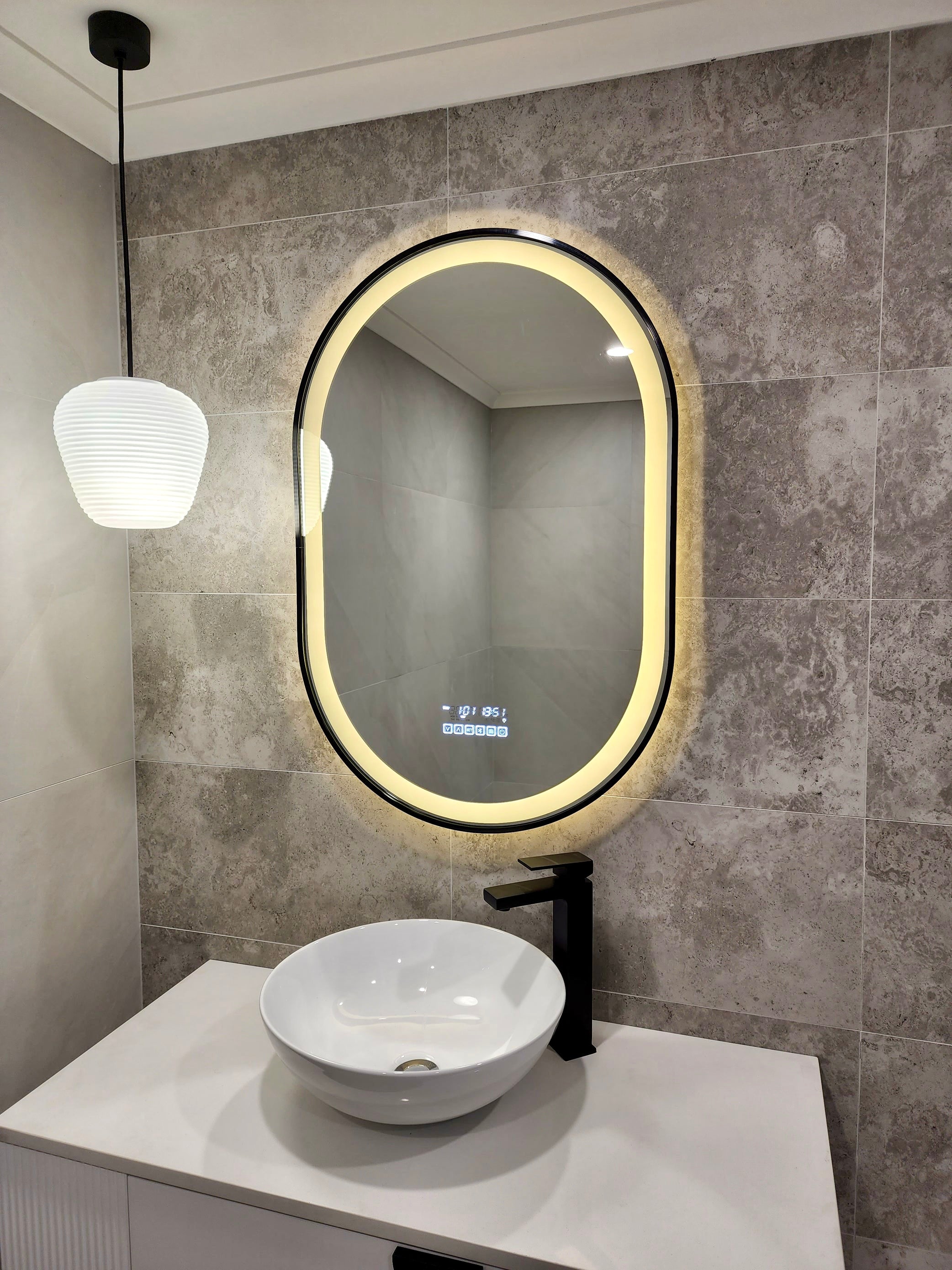 Its elegant oval silhouette adds softness and sophistication to modern interiors, while smart touch controls give you seamless access to lighting, audio, and visibility features — all in one beautifully designed mirror.