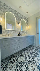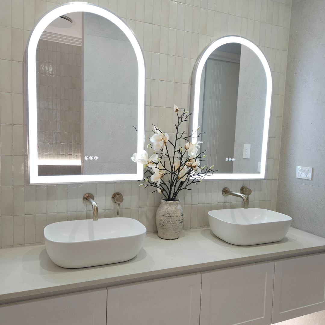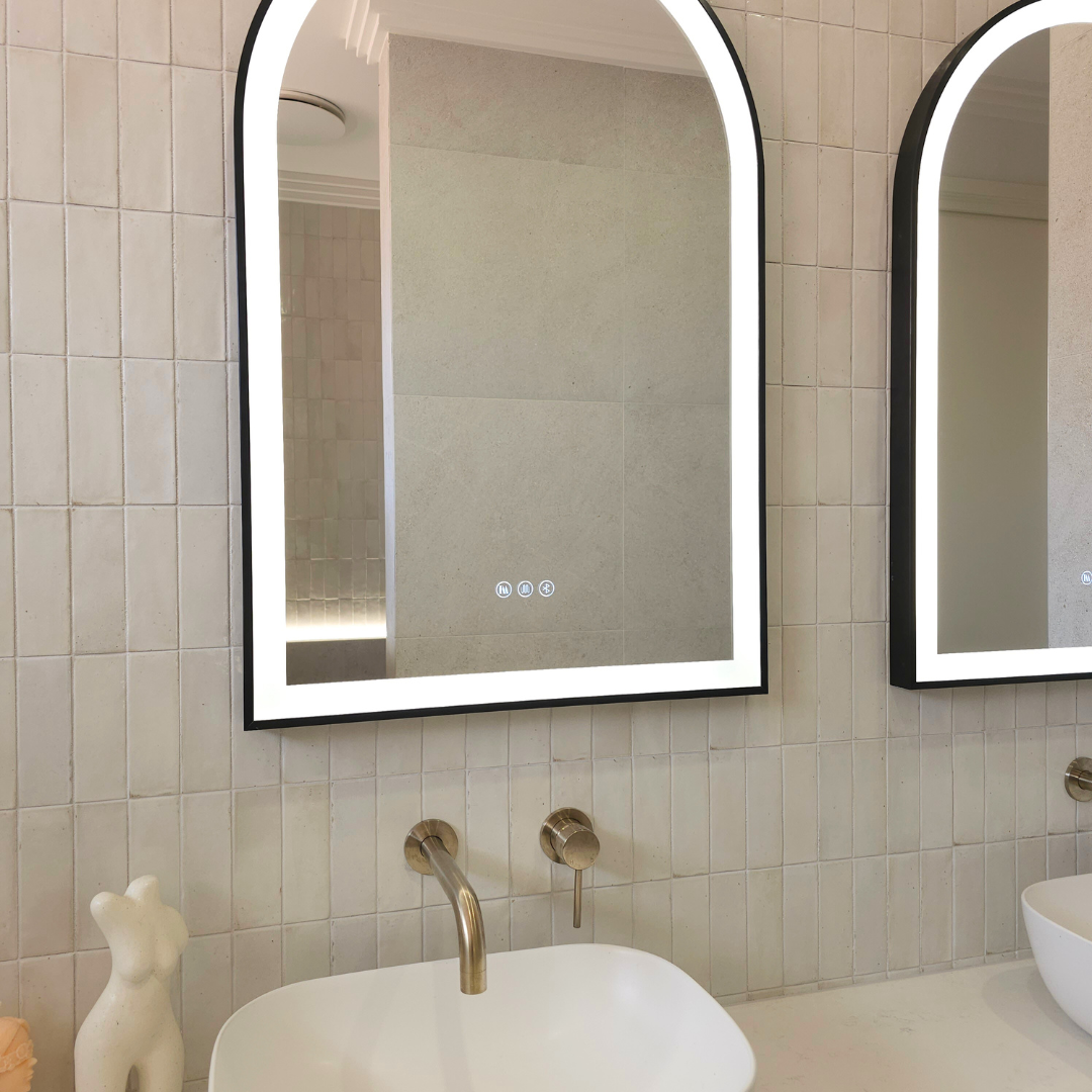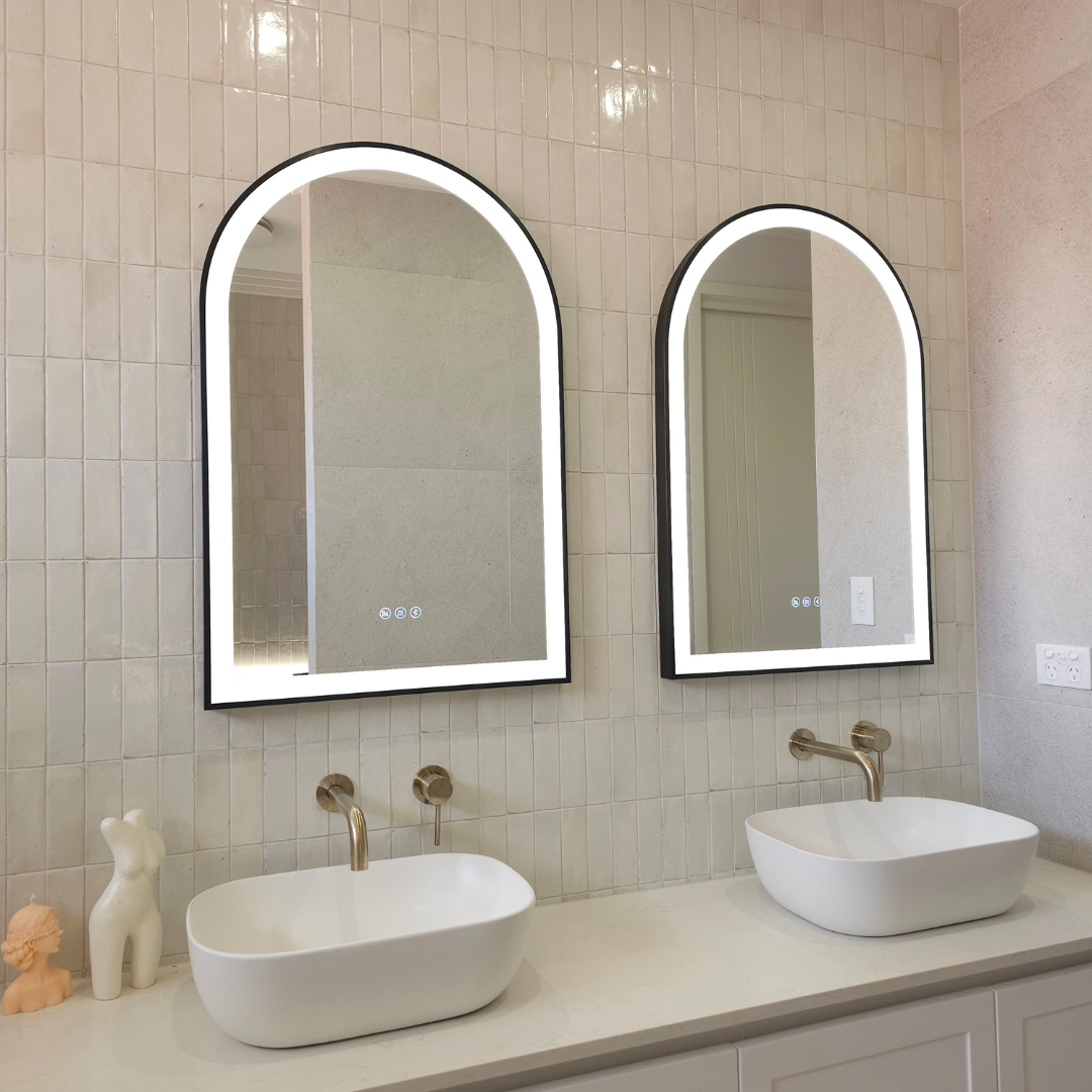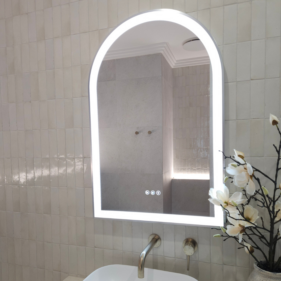 Architectural arched frame: Adds soft visual lines while mounting flush to the wall for a clean, elevated look.