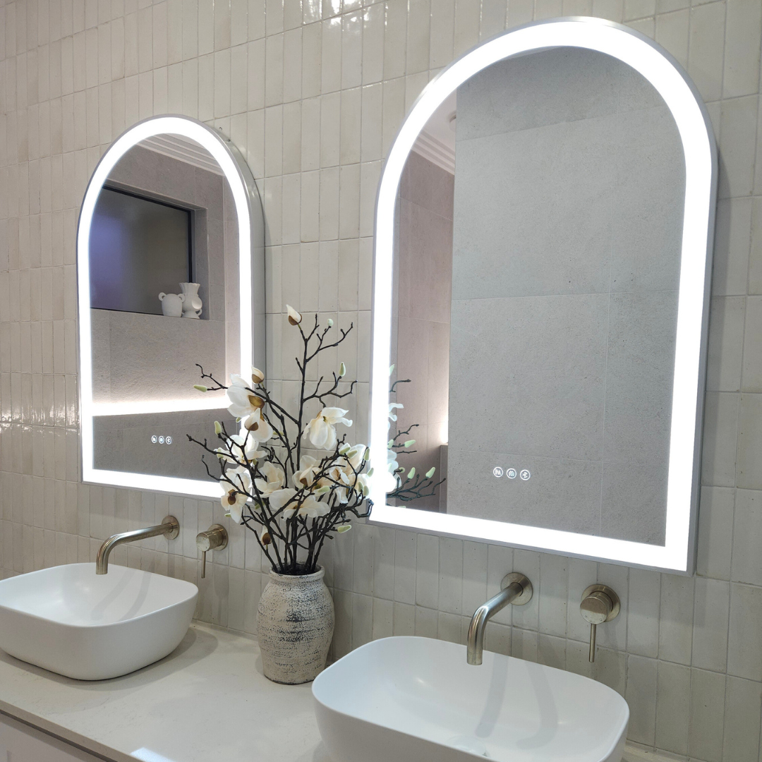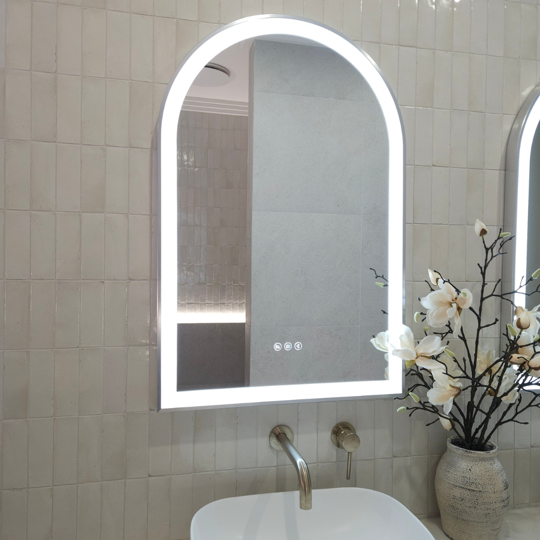 Wrapped in a brushed aluminium frame and designed to mount flush, this arched mirror becomes a true centrepiece — whether styled solo or in a striking series.