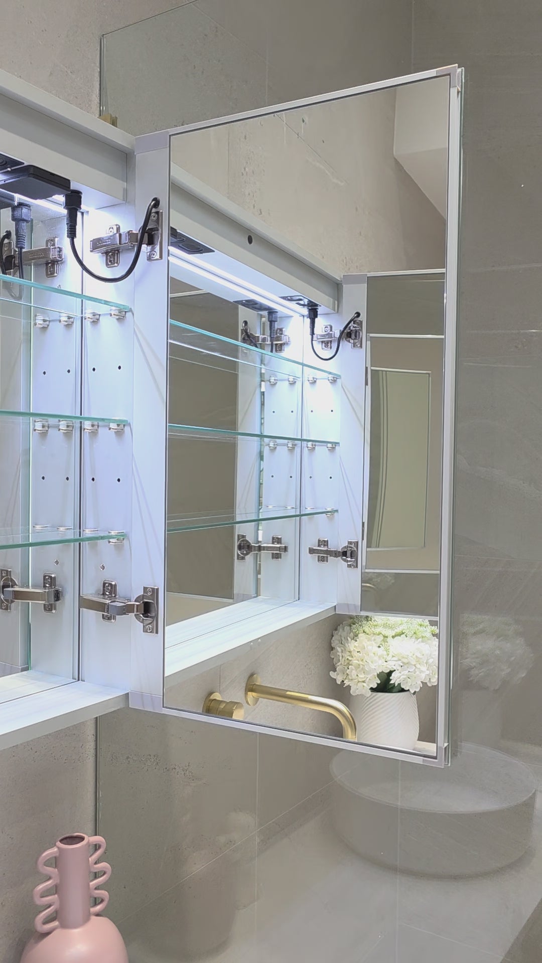 The Milan LED Mirror Cabinet is a sleek, contemporary bathroom essential that combines practical storage with advanced features. With touch-activated LED lighting, integrated Bluetooth audio, a demister, and a discreet internal power point, it brings convenience and style into one compact unit.