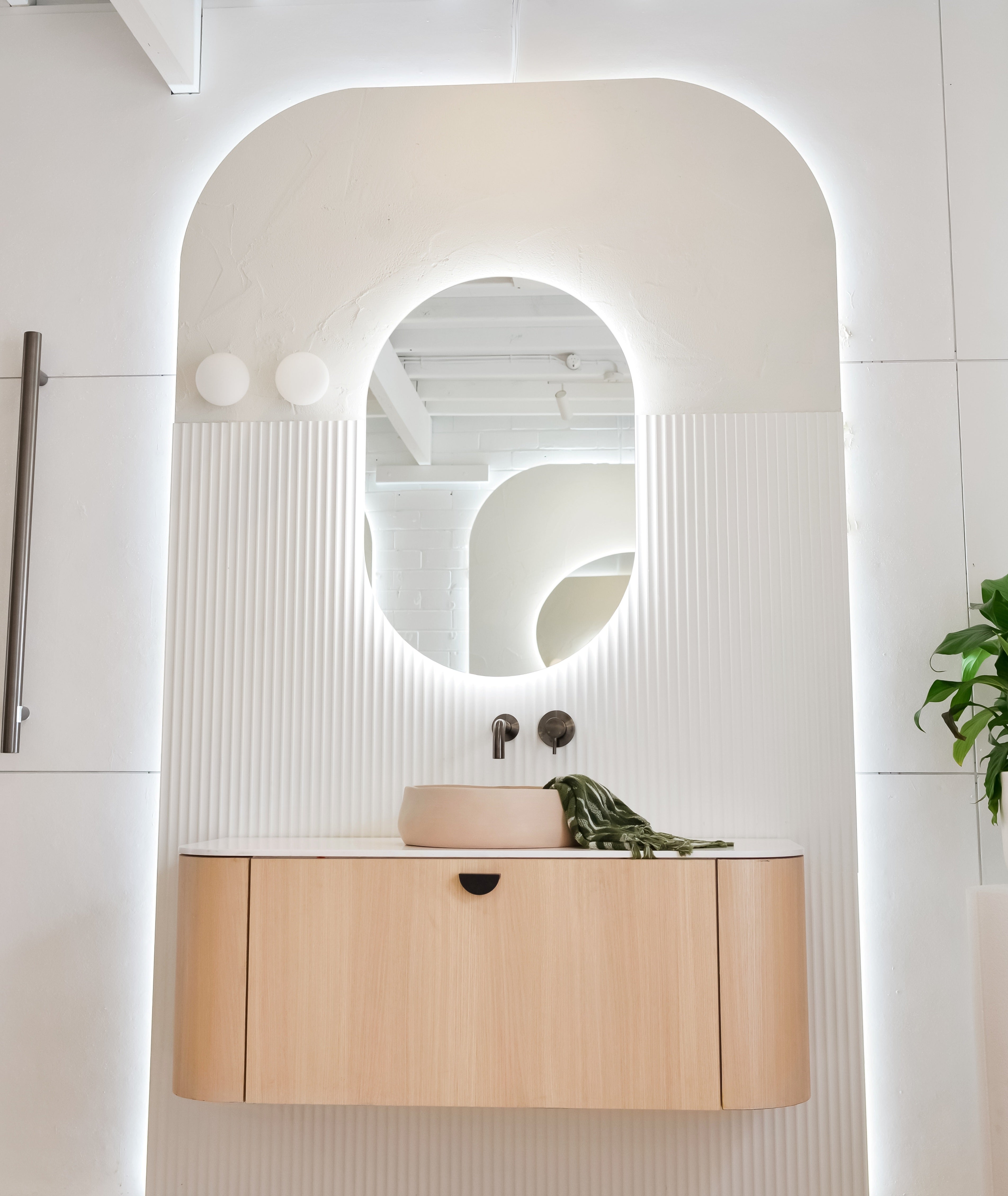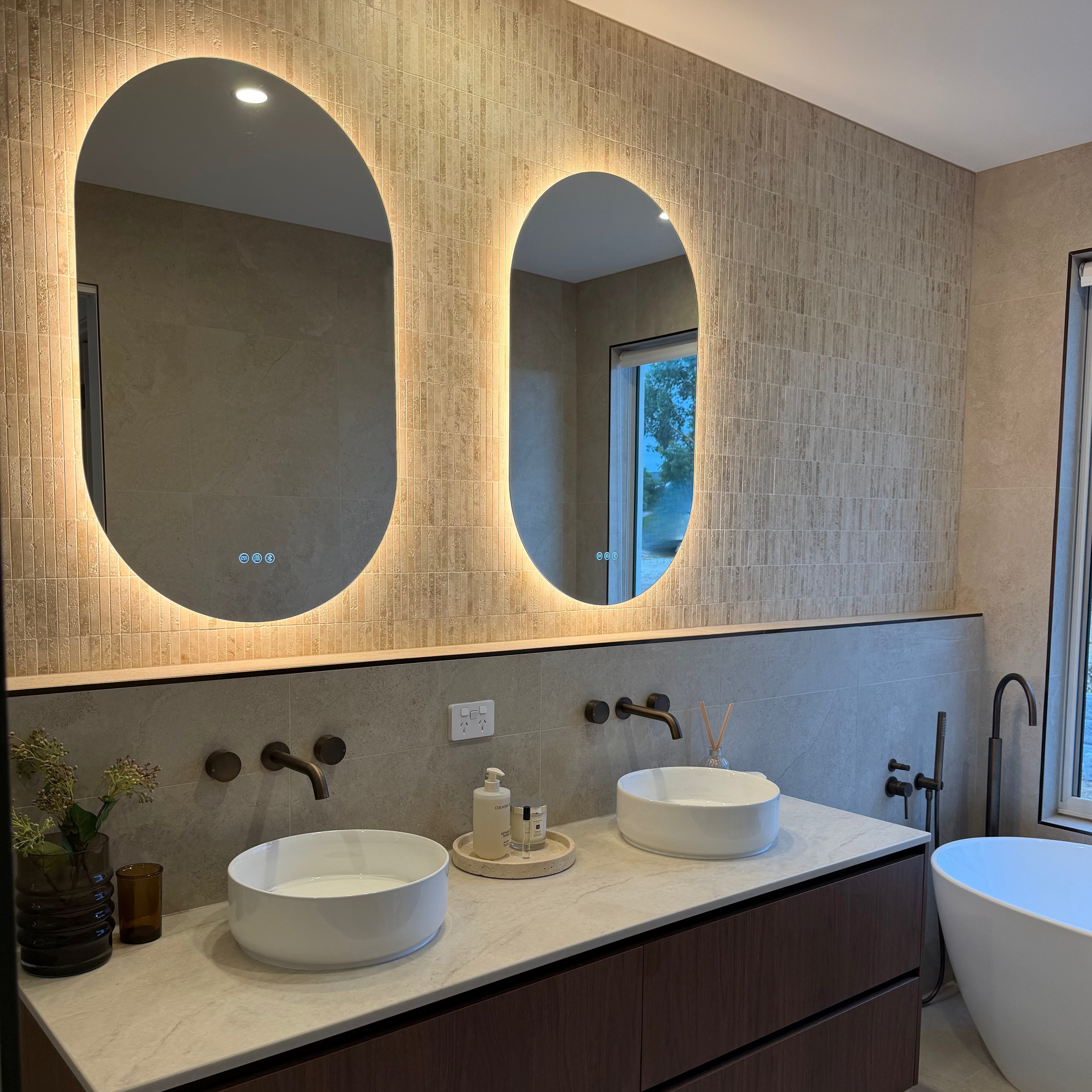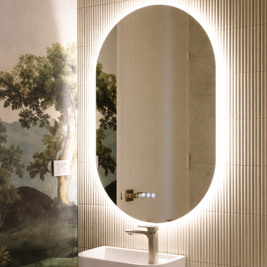 The Riviera oval LED mirror is designed to fix that — its vertical shape naturally draws the eye upward, helping your space feel taller, lighter, and more balanced.